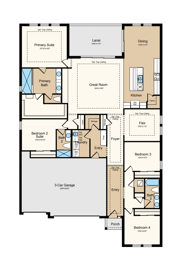 Welcome to the 1-story Bainbridge floor plan, home to 2,681 square feet of well-planned living space. With 4 bedrooms, 3 bathrooms and a 3-car garage, this home offers ample room for connection and comfort. 2 bedrooms and 1 bathroom are tucked near the front of the home, creating a private retreat. A bedroom suite adds even more flexibility.